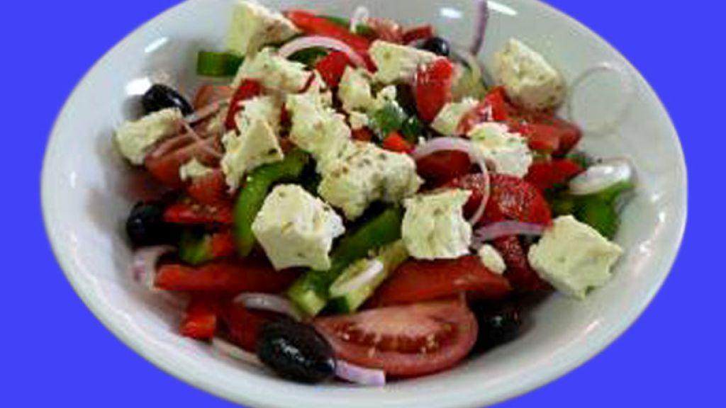 The salad is very easily prepared, chopping the tomatoes to a medium size, slicing the cucumber and the green pepper. Throw them in a salad bowl and slice some raw onion if you wish. Crumble the feta cheese on top, lightly sprinkle oregano on top along with salt to taste and finally pour as much olive oil as you wish on top.